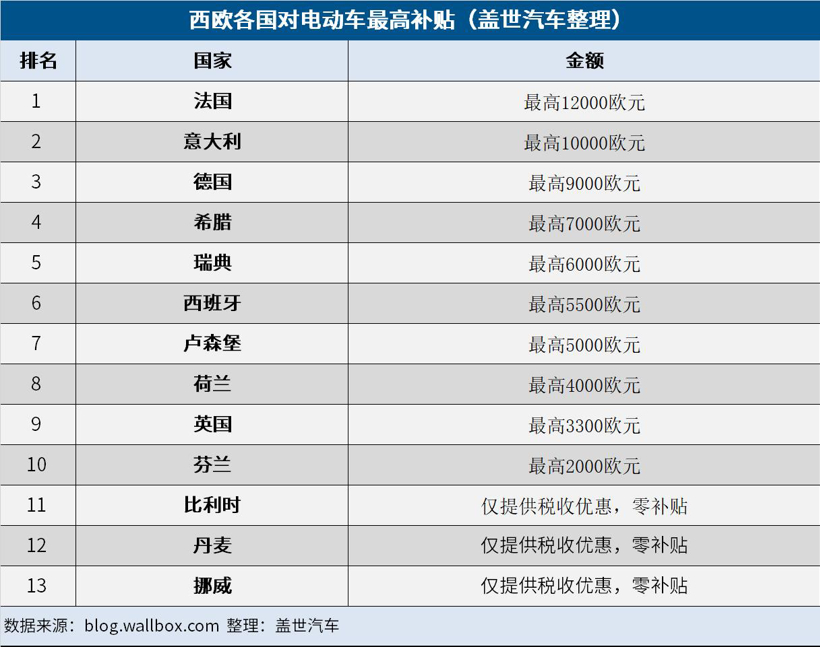 单独来看,我们可能并不能深入了解瑞典政府对电动车的补贴力度,如果从整个欧洲范围来看,瑞典政府提供的补贴可以算得上名列前茅,如下图: