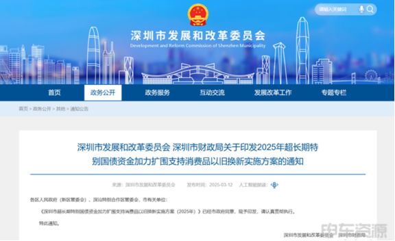 7. 3月13日深圳市发改委联合深圳市财政局印发《深圳市超长期特别国债资金加力扩围支持消费品以旧换新实施方案(2025年)》。