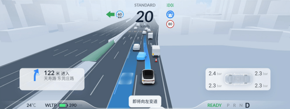 >行业首创的仪表SR模拟显示,让车主鹏友使用城市NGP时能更好获取道路、旁车等方面的信息,清晰展示智能驾驶决策过程,建立人机共驾的信任感。