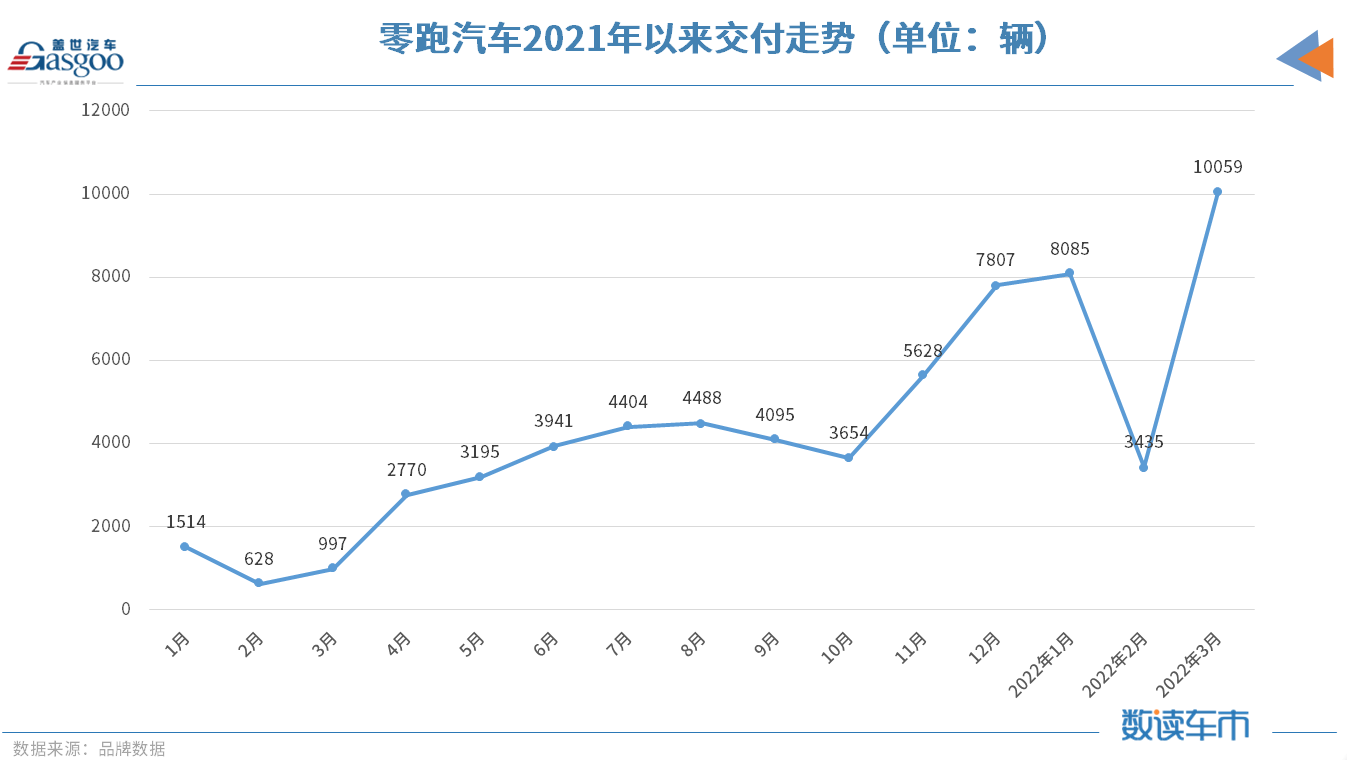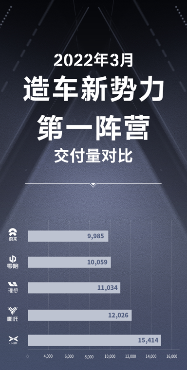 4月1日是愚人节,但对新势力车企来说则是公布3月交付量的重要日子。目前,已经公布3月交付量的头部造车新势力有蔚来、小鹏、理想、零跑、哪吒。这五家车企也恰恰是目前受关注度较高的造车新势力,从其各自公布的3月交付量来看,昔日稳居造车新势力第一阵营中的蔚来稍显掉队,其它四家单月交付量均成功迈进万辆大关,其中,零跑汽车3月交付量达10059辆,单月交付量成绩历史上首次突破万辆大关,成功迈入造车新势力第一阵营。